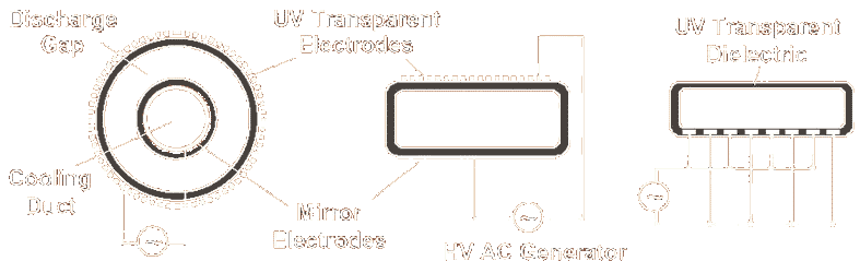 由于DBD在產(chǎn)生的放電過程中會(huì)產(chǎn)生大量的自由基和準(zhǔn)分子,如OH、O、NO等,它們的化學(xué)性質(zhì)非?;钴S,很容易和其它原子、分子或其它自由基發(fā)生反應(yīng)而形成穩(wěn)定的原子或分子。因而可利用這些自由基的特性來處理VOCs,在環(huán)保方面也有很重要的價(jià)值。另外,利用DBD可制成準(zhǔn)分子輻射光源,它們能發(fā)射窄帶輻射,其波長覆蓋紅外、紫外和可見光等光譜區(qū),且不產(chǎn)生輻射的自吸收,它是一種高效率、高強(qiáng)度的單色光源。在DBD電極結(jié)構(gòu)中,采用管線式的電極結(jié)構(gòu)還可制成臭氧O3發(fā)生器?,F(xiàn)在人們已越來越重視對DBD的研究與應(yīng)用。